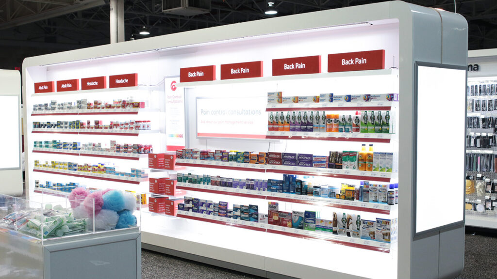 Specialty pharmacy and grocery shelves – In higher-density categories, shelving itself becomes a management tool. Flex-style Rx shelves with upturned lips or optional down-slant configurations are designed specifically to organize small, high-SKU items and improve restocking efficiency.