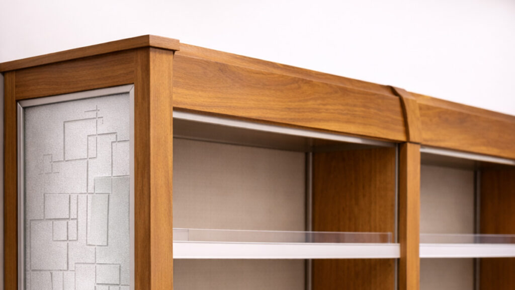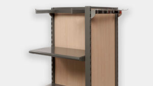 Slatwall backs – These allow shelves and slatwall hooks to be integrated into the same run. With aluminum or vinyl inserts and a range of finish options, they’re often used to create a more premium, finished look.
