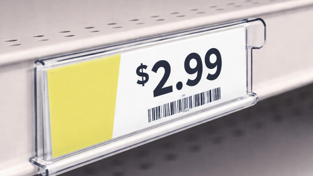 Label holders and shelf channel strips – Ticket mouldings and label holders along the front edge of Lozier shelves are foundational to any shelf management system, supporting clear pricing, barcodes, and planogram accuracy.