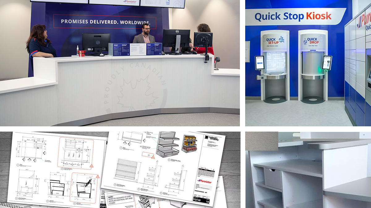 - They simplify national rollouts. CBSF’s work with Purolator shows how 25 standardized modules can be combined into 18 different configurations, giving every store a counter tailored to its footprint and traffic patterns without starting from scratch each time.